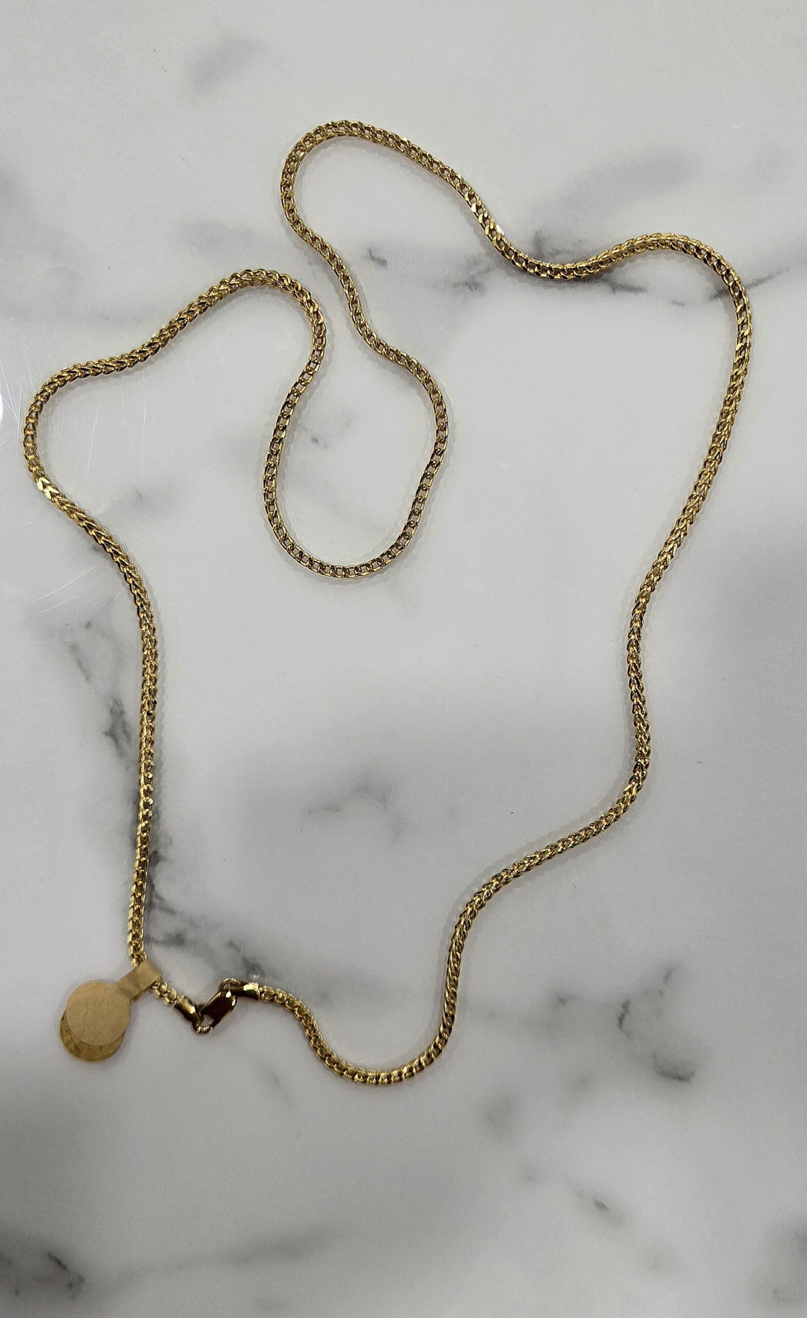 Cadena de oro de 18k, 60 cm / 23 inc de largo, 8.2g de peso.